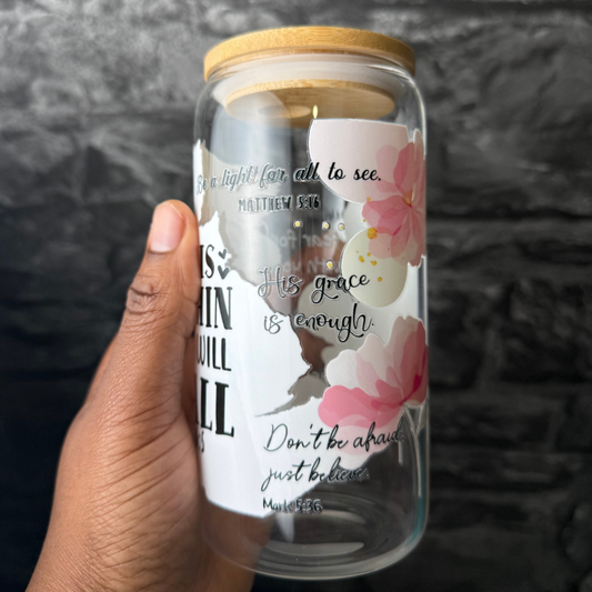 Christmas glass tumbler 16oz - Candy cane, sweet and bow