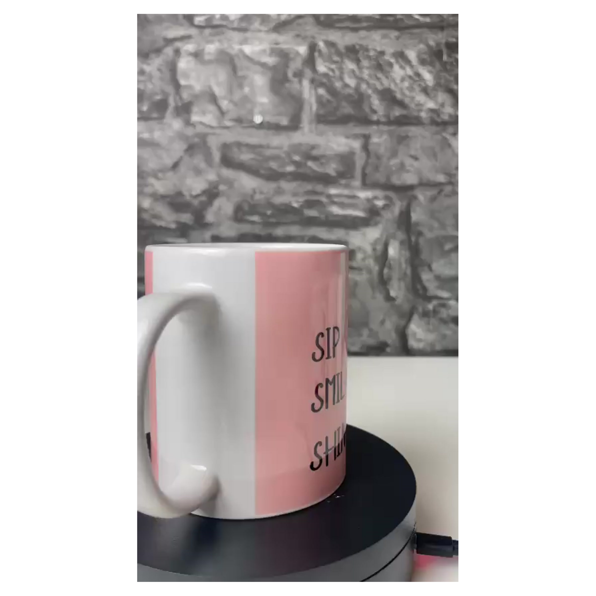 The Sip, Smile, Shine mug offers a daily reminder to start your day off right. Made from durable ceramic, this mug features a sleek design with the words "Sip, Smile, Shine" printed on the front. Enjoy your favourite hot beverage while embracing a positive mindset.